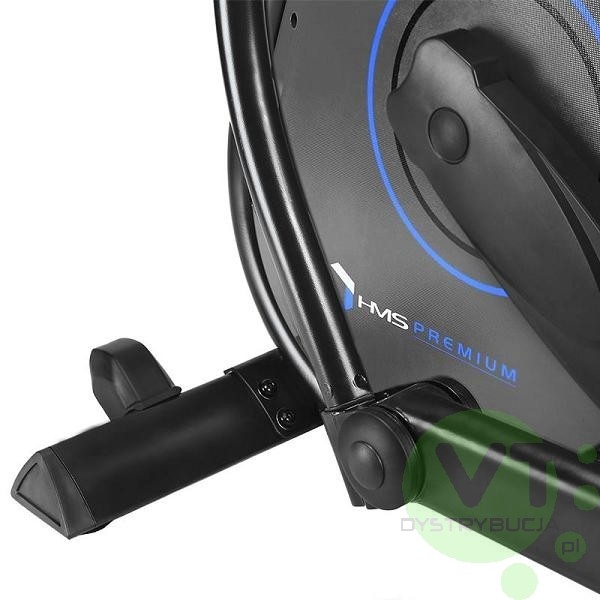 Trenażer eliptyczny marki HMS PREMIUM wyposażony jest w głośniki i wentylator. Posiada również własny generator energii, który pozwala na korzystanie ze sprzętu bez podłączania go do zewnętrznego źródła energii – napędzamy go siłą własnych mięśni.
